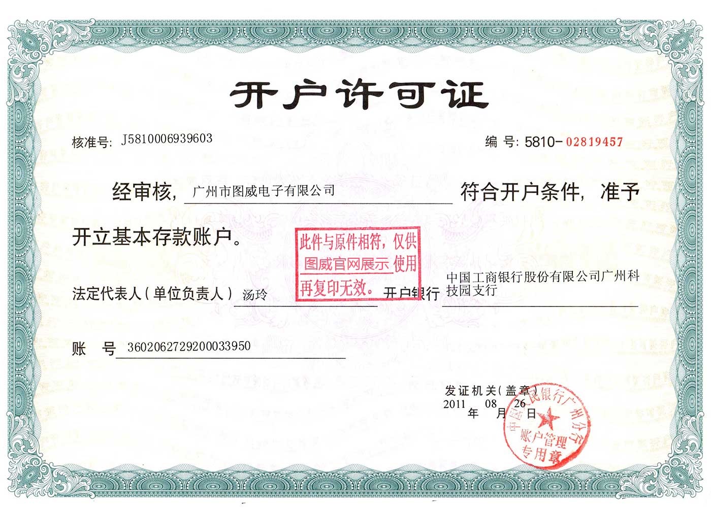 公司簡介 > 榮譽證書 > 圖威開戶許可證